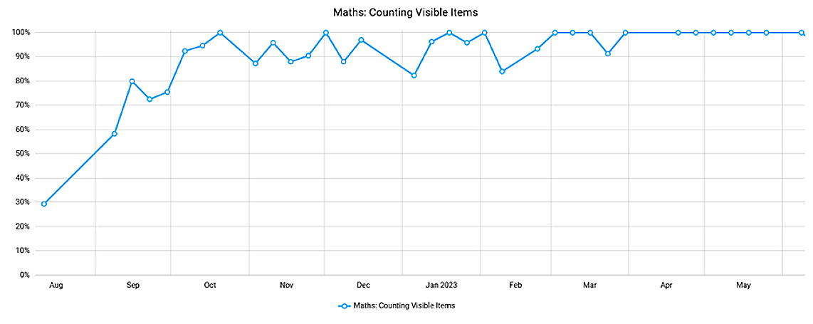 Maths: Applied the Teaching Early Numeracy to Children with Developmental Disabilities framework to build counting, matching, and early addition/subtraction skills.